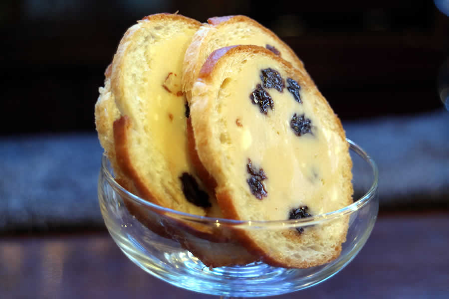 バケットに自家製レーズンバターを詰めたリピート必至のちょっと大人なおつまみ。